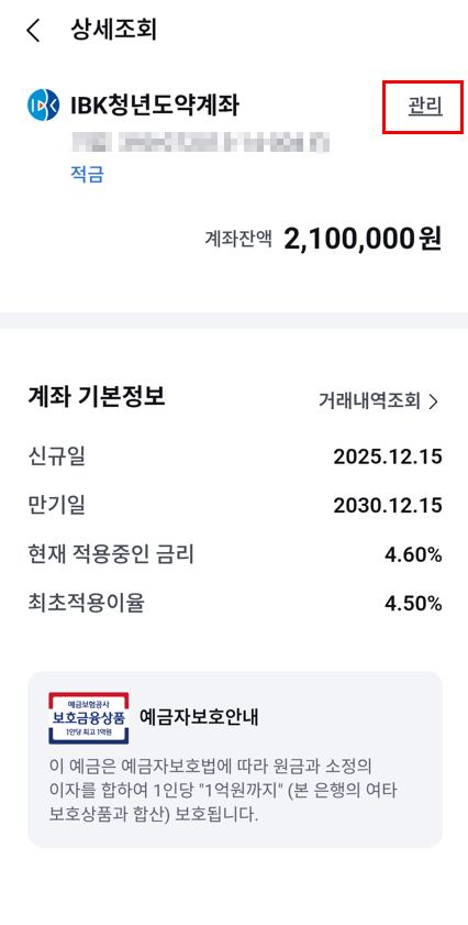 4. 계좌상세조회 - 관리 클릭 - 정부기여금 클릭
